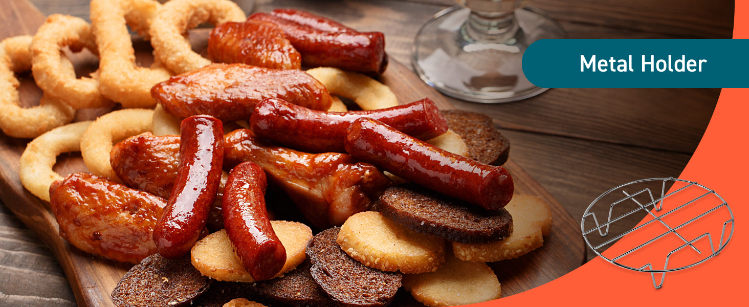 - 6-PIECE AIR FRYER ACCESSORY KIT: Including 1 x Cake Pan; 1 x Pizza Pan; 1 x Metal Holder; 1 x Multi-Purpose Rack with Skewers; 1 x Silicone Mat; 1 x Egg Bites Mold with Lid. Meet all your cooking needs.