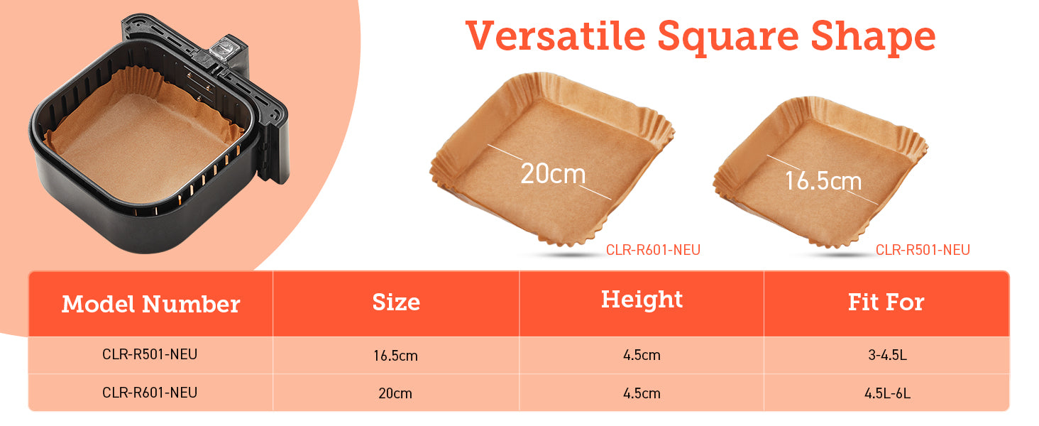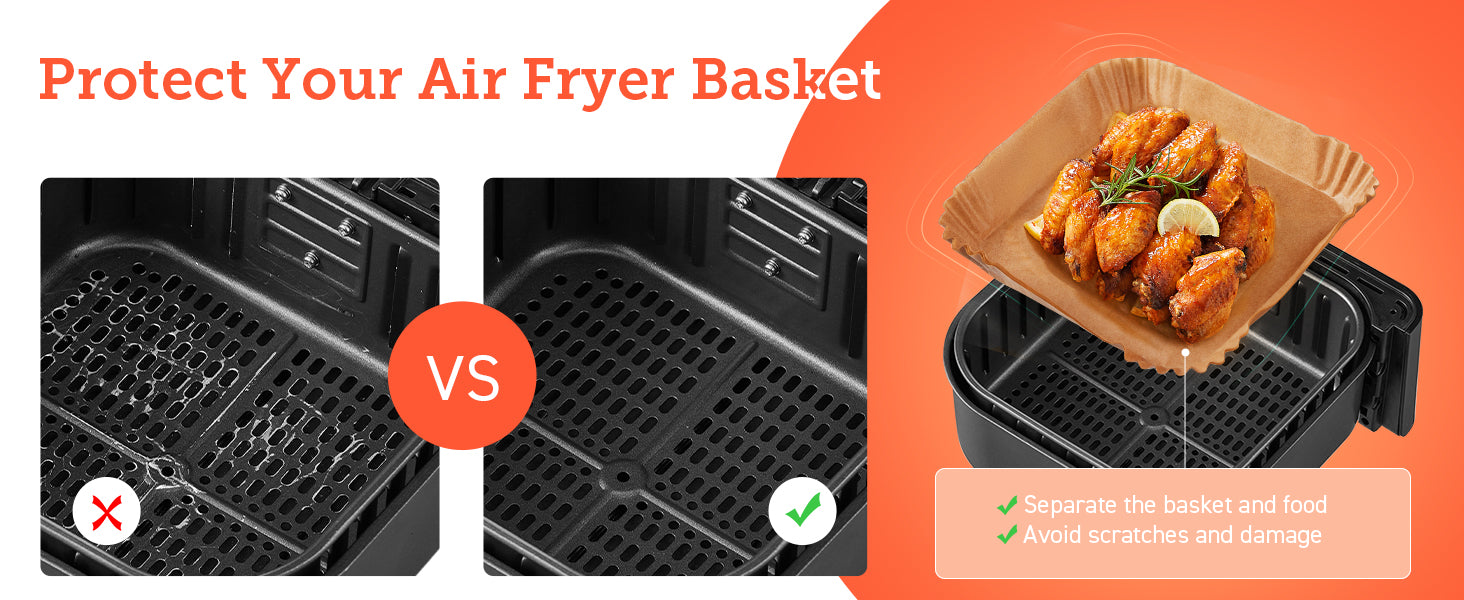 - Easy to Use: The disposable square air fryer paper liners are designed to match the shape of air fryer basket, so you don’t need to tear or cut it. Simply place it in the basket when you're ready to cook.