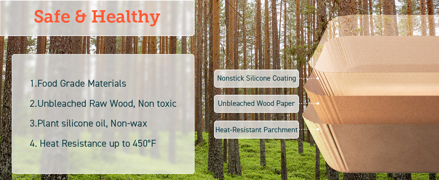 - Healthy & Safe: The parchment paper is made with wax-free, non-toxic, and non-bleached food-grade parchment paper and can be heated up to 230℃, the highest air fryer temperature.
