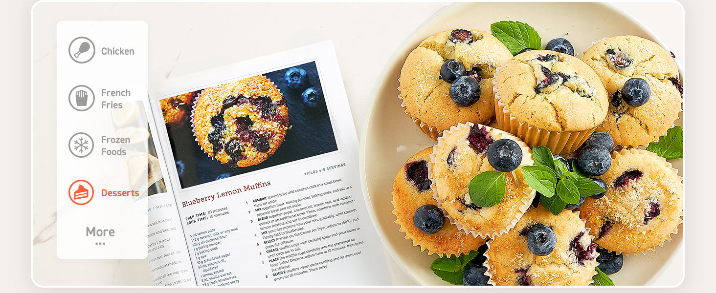 - 【100 Complimentary Recipes】 Enjoy delightful, beginner-friendly dishes with portion sizes, cook times, and temperature guidance in COSORI recipe for added inspiration; Easy to enjoy the seasoned chef cooking results just in home