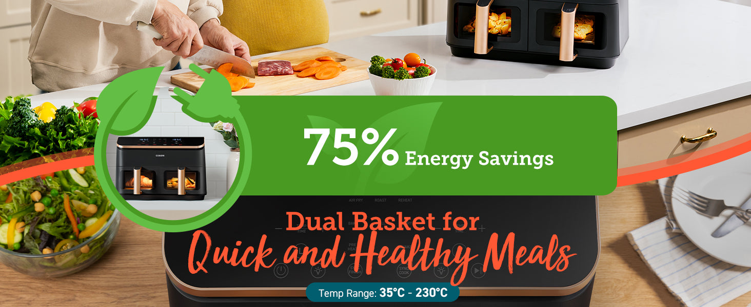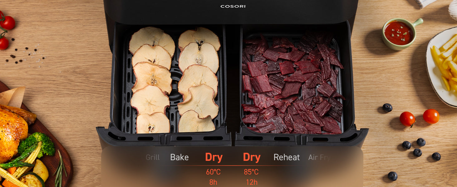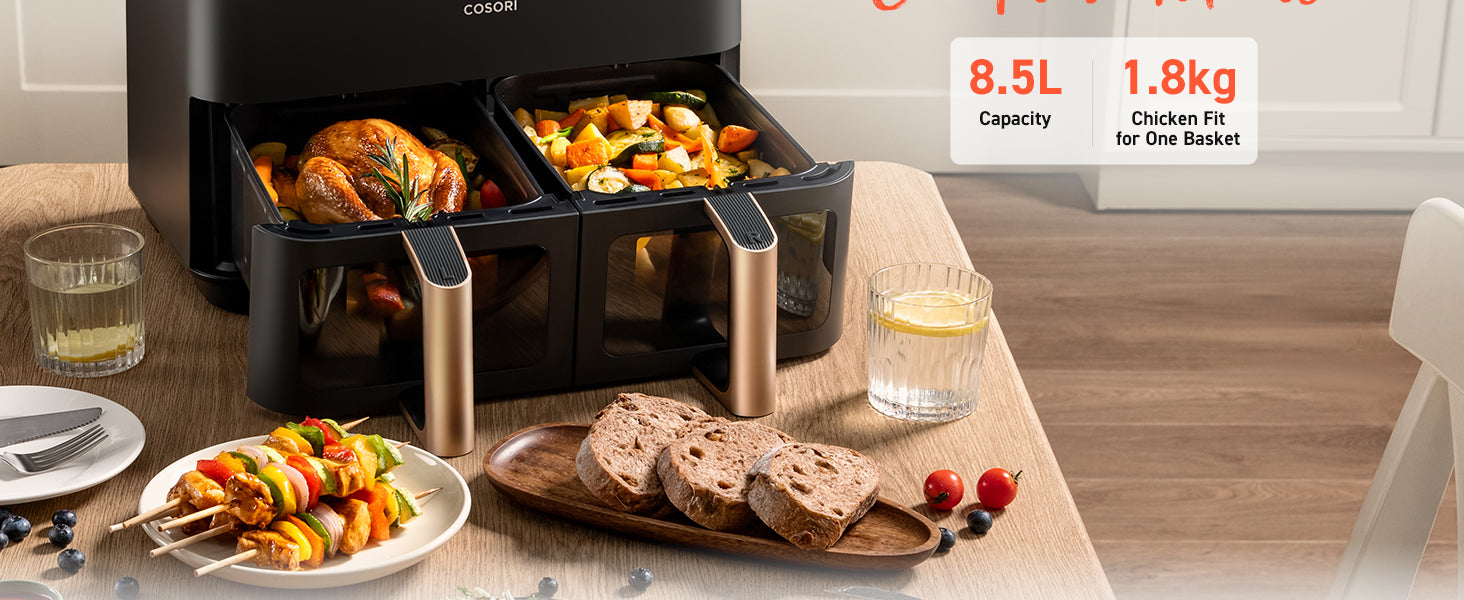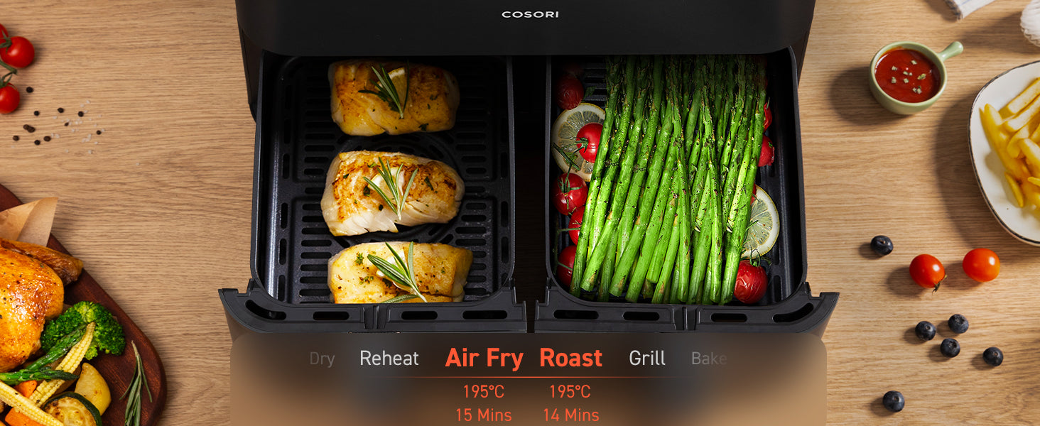 - ๐๐จ๐จ๐ค ๐๐จ๐ฎ๐ซ ๐๐๐ฒ ๐ญ๐จ ๐๐๐๐ฅ๐ญ๐ก: Create every meal with up to 97% less oil for guilt-free crispy goodness with the COSORI dual air fryer