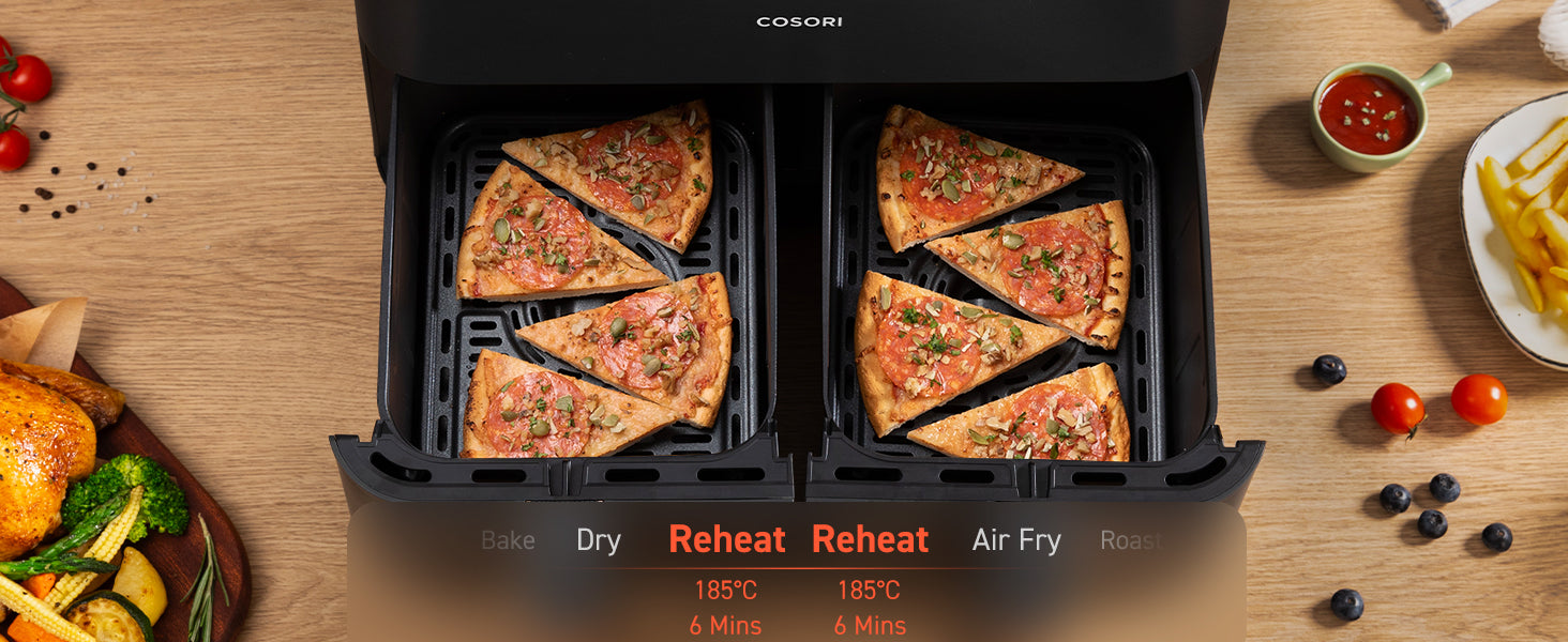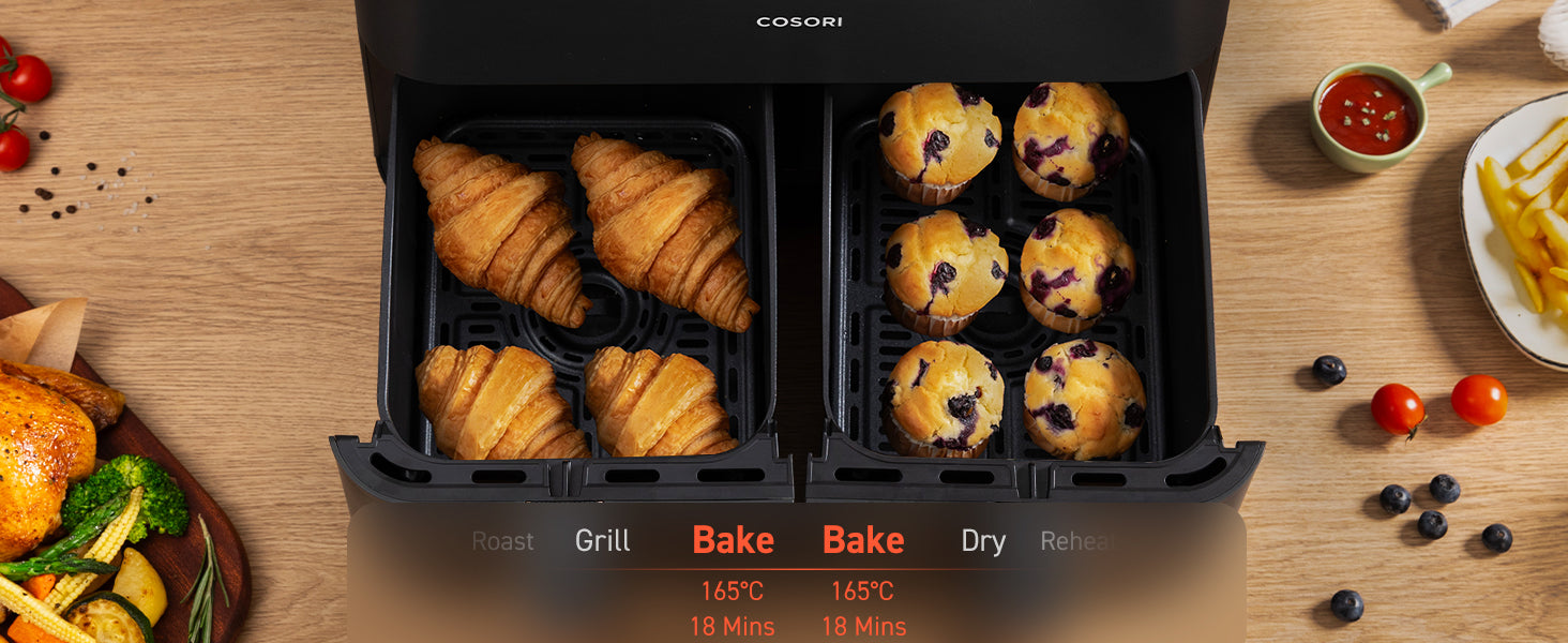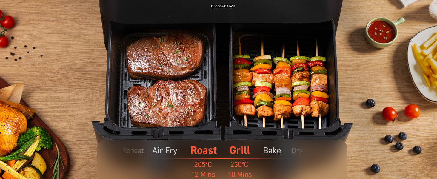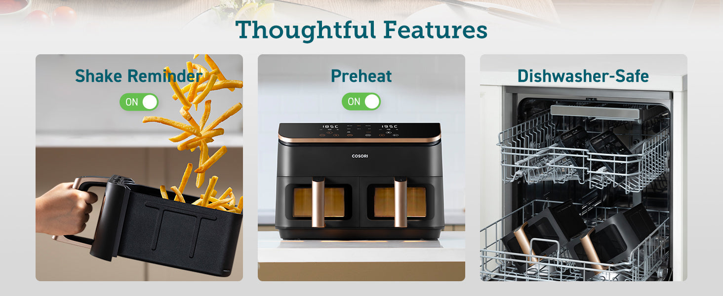 - ๐๐จ๐จ๐ค ๐๐จ๐ฎ๐ซ ๐๐๐ฒ ๐ญ๐จ ๐๐๐๐ฅ๐ญ๐ก: Create every meal with up to 97% less oil for guilt-free crispy goodness with the COSORI dual air fryer