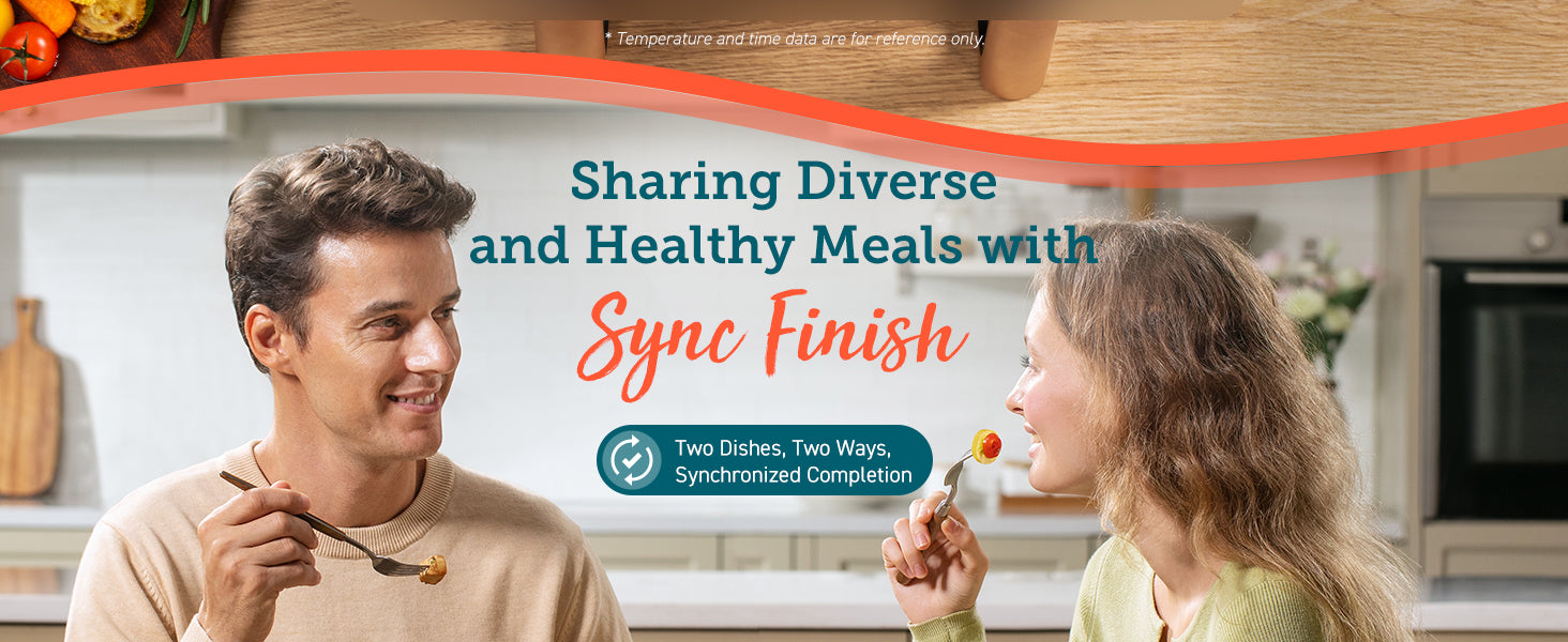 - ๐๐จ๐ฎ๐๐ฅ๐ ๐๐จ๐ซ๐ญ๐ข๐จ๐ง๐ฌ, ๐๐จ๐ฎ๐๐ฅ๐ ๐ ๐ฅ๐๐ฏ๐จ๐ฎ๐ซ๐ฌ: Sync Cook: Set identical time and temperature for both baskets effortlessly; Sync Finish: Cook with different settings in both baskets, all ready simultaneouslyโideal for seamless meal prep
