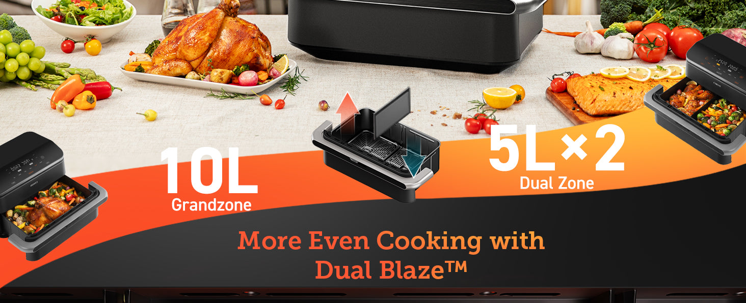 - Special feature: Dual Zone & SyncCook Technology, 10L Extra-Large Capacity, Healthier Cooking with Less Fat, Energy-Saving & Fast Cooking