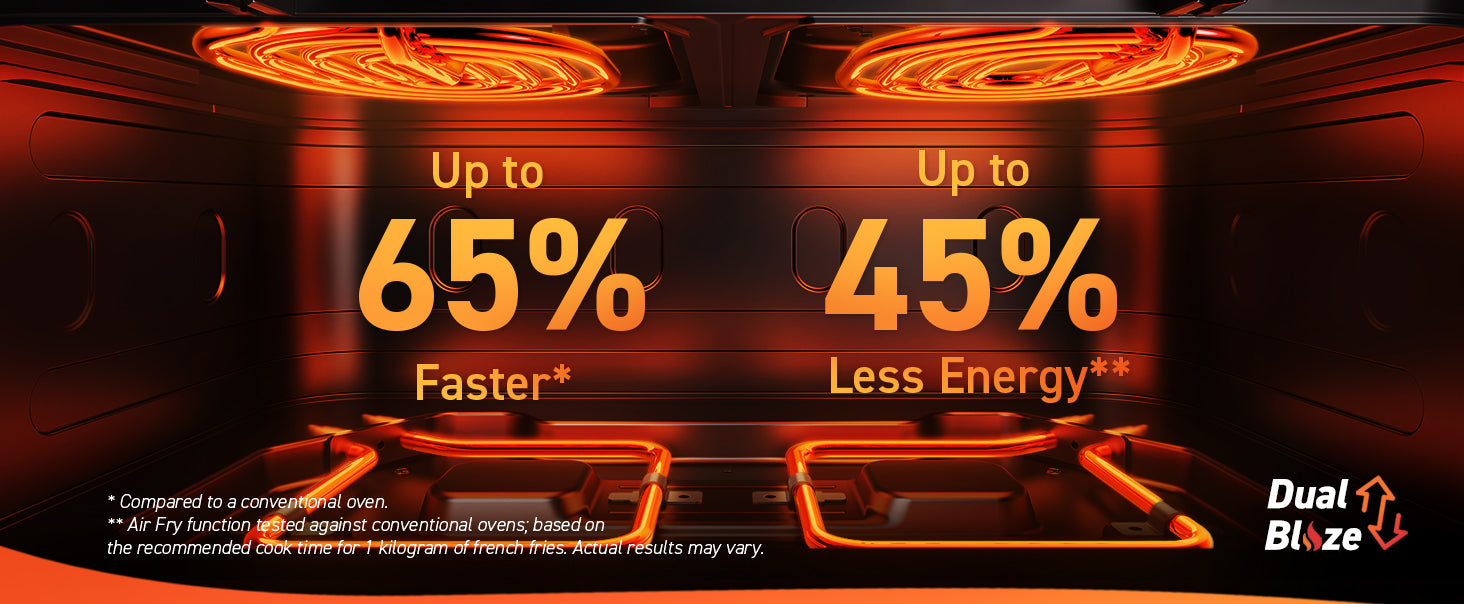 - ๐ฒ๐ฒ% ๐๐ง๐๐ซ๐ ๐ฒ ๐๐๐ฏ๐ข๐ง๐ , ๐ฏ๐% ๐ ๐๐ฌ๐ญ๐๐ซ: Save 66% energy cost compared to traditional ovens. With Dual Blaze technology quick family meals up to 35% than traditional ovens