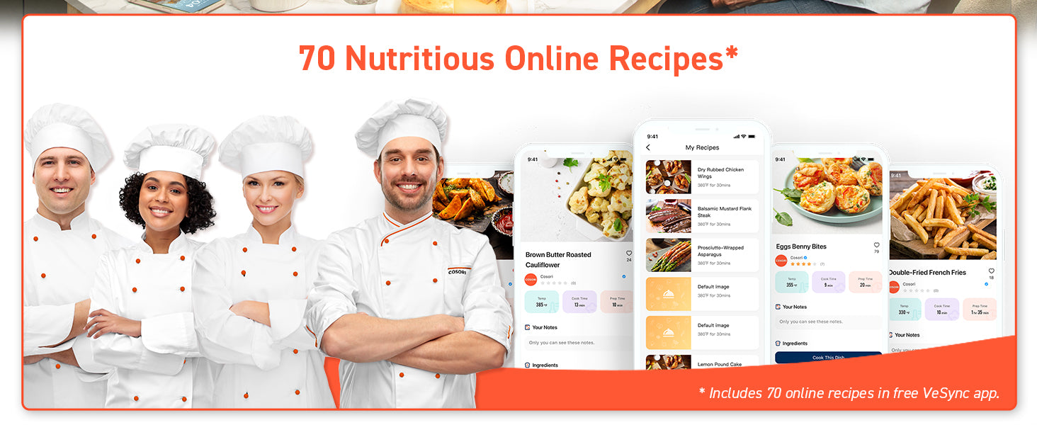 - ๐๐ฆ๐๐ซ๐ญ ๐๐จ๐จ๐ค๐ข๐ง๐ & ๐๐ ๐๐ง๐ฅ๐ข๐ง๐ ๐๐๐๐ข๐ฉ๐๐ฌ: Access your cooking progress anywhere and remotely control your fryer through free VeSync app. NOTE: Due to regulatory requirements, the product can only support manually turn on. No support for Alexa