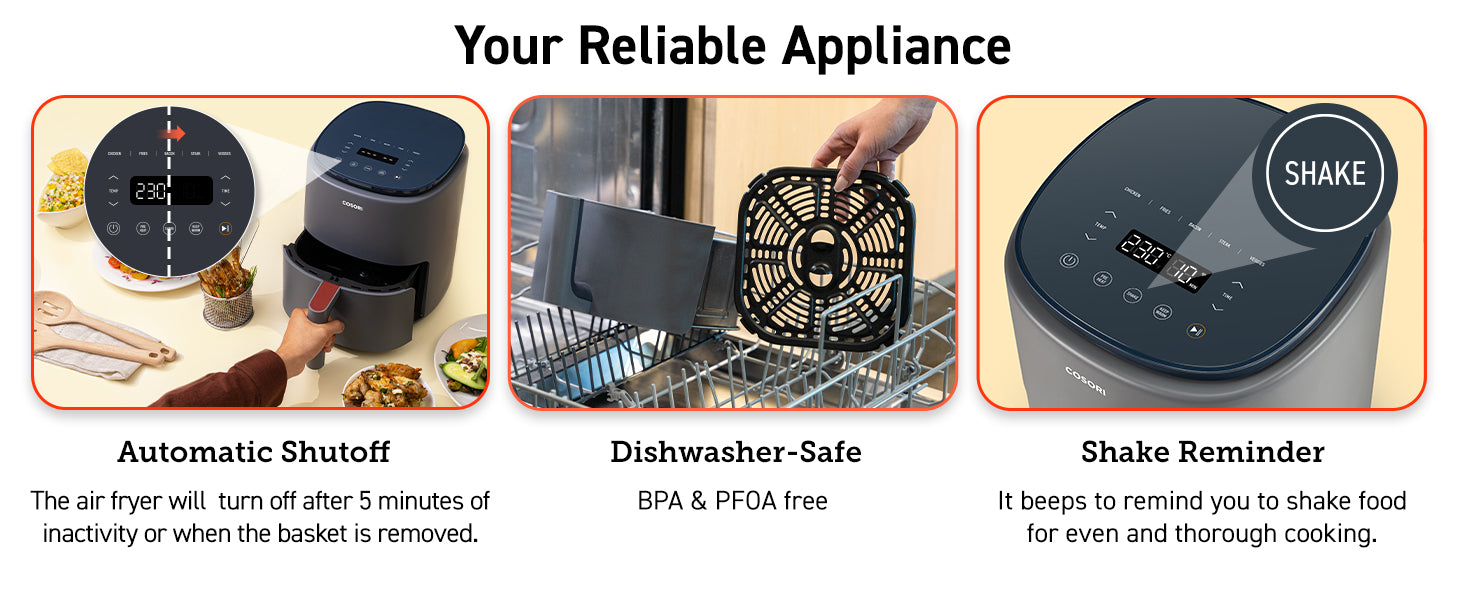 - ๐๐จ๐ซ๐ ๐๐ง๐๐ซ๐ ๐ฒ ๐๐ง๐ ๐๐ข๐ฆ๐ ๐๐๐ฏ๐ข๐ง๐ : Saving up to 55% on your energy bills, the COSORI air fryer holds the exclusive Even Heating Technology, reaching a max of 230ยฐC and cooking 50% faster than a conventional oven (Attention: three-point plug)