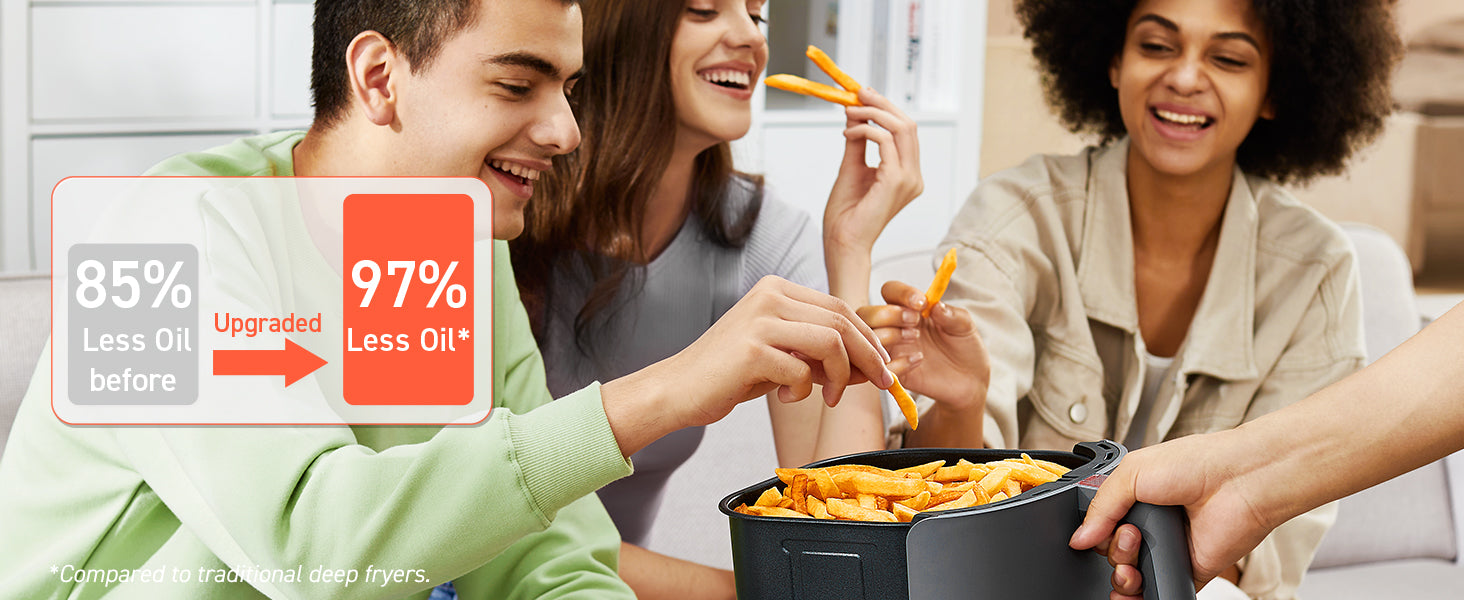 - ๐๐% ๐๐๐ฌ๐ฌ ๐๐ข๐ฅ: Cook meals with up to 97% less oil than traditionally deep-fried food