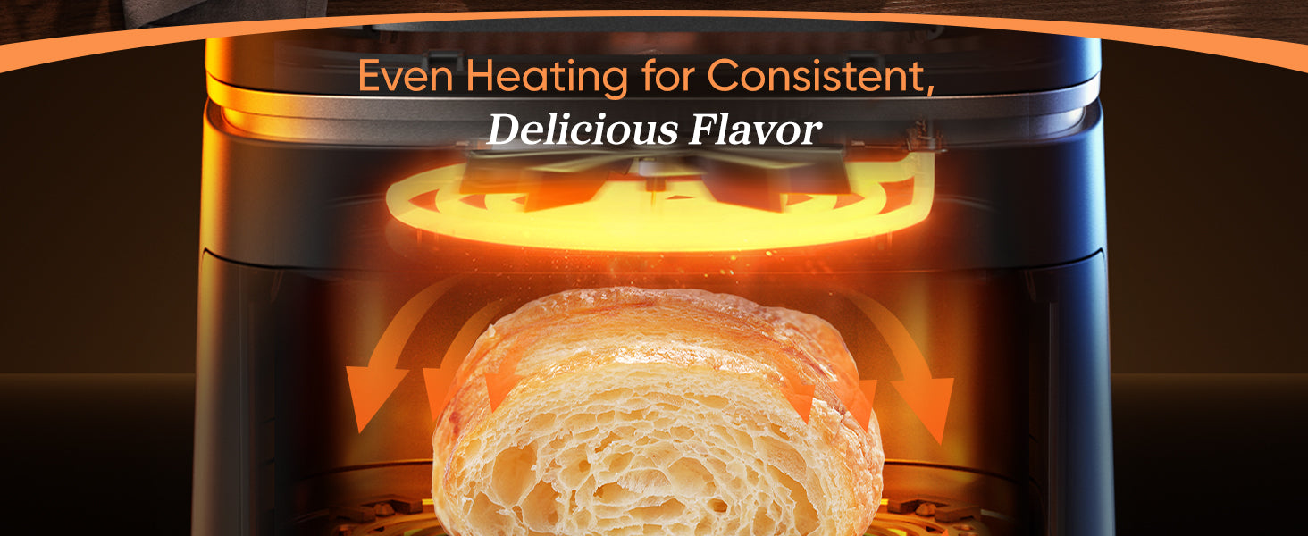 - ๐๐ฏ๐๐ง ๐๐จ๐จ๐ค๐ข๐ง๐ ๐๐ข๐ญ๐ก ๐๐ฎ๐๐ฅ ๐๐๐๐ญ๐ข๐ง๐ : The lower basket features dual heating elements, ensuring even heat distribution for every bite and perfect texture and flavor