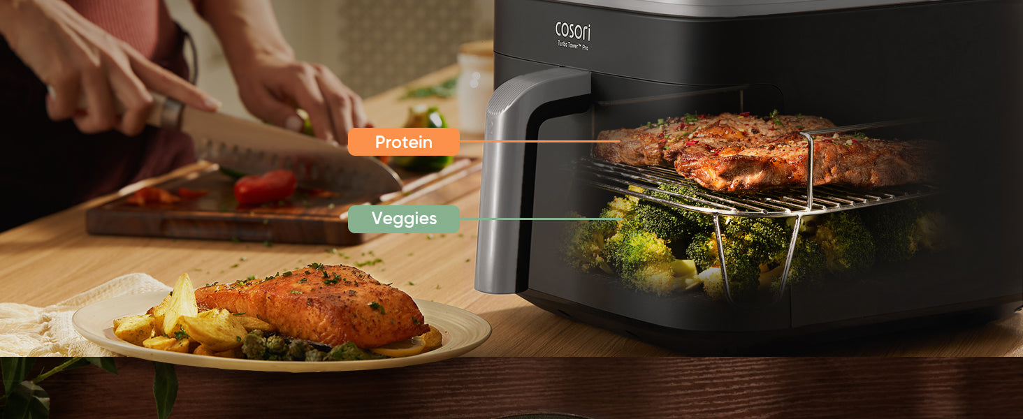 - ๐๐จ๐ฆ๐ฉ๐ฅ๐๐ญ๐, ๐๐๐ฅ๐๐ง๐๐๐ ๐๐๐๐ฅ๐ฌ ๐๐ซ๐ ๐๐๐ฌ๐ข๐๐ซ ๐๐ก๐๐ง ๐๐ฏ๐๐ซ: Supports balanced cooking to meet your needs for carbs, protein, and vegetables. Includes crated recipes by Cosori chefs with nutritional info, making delicious meals easy to achieve