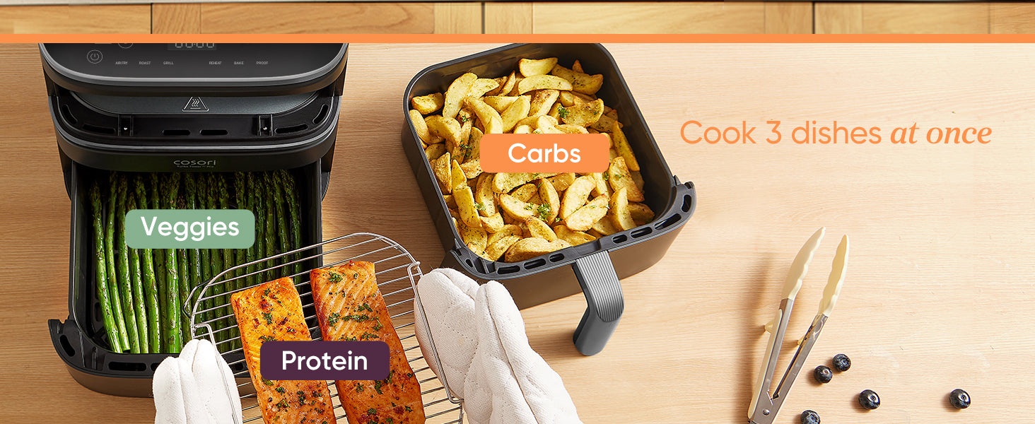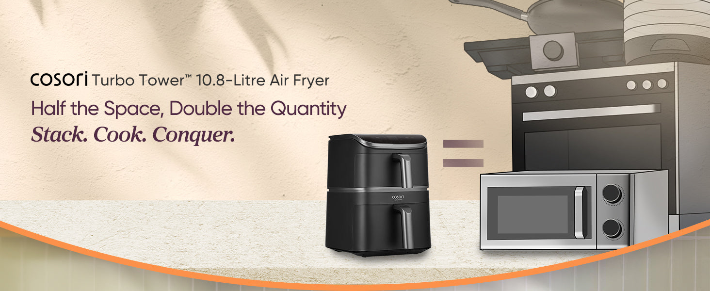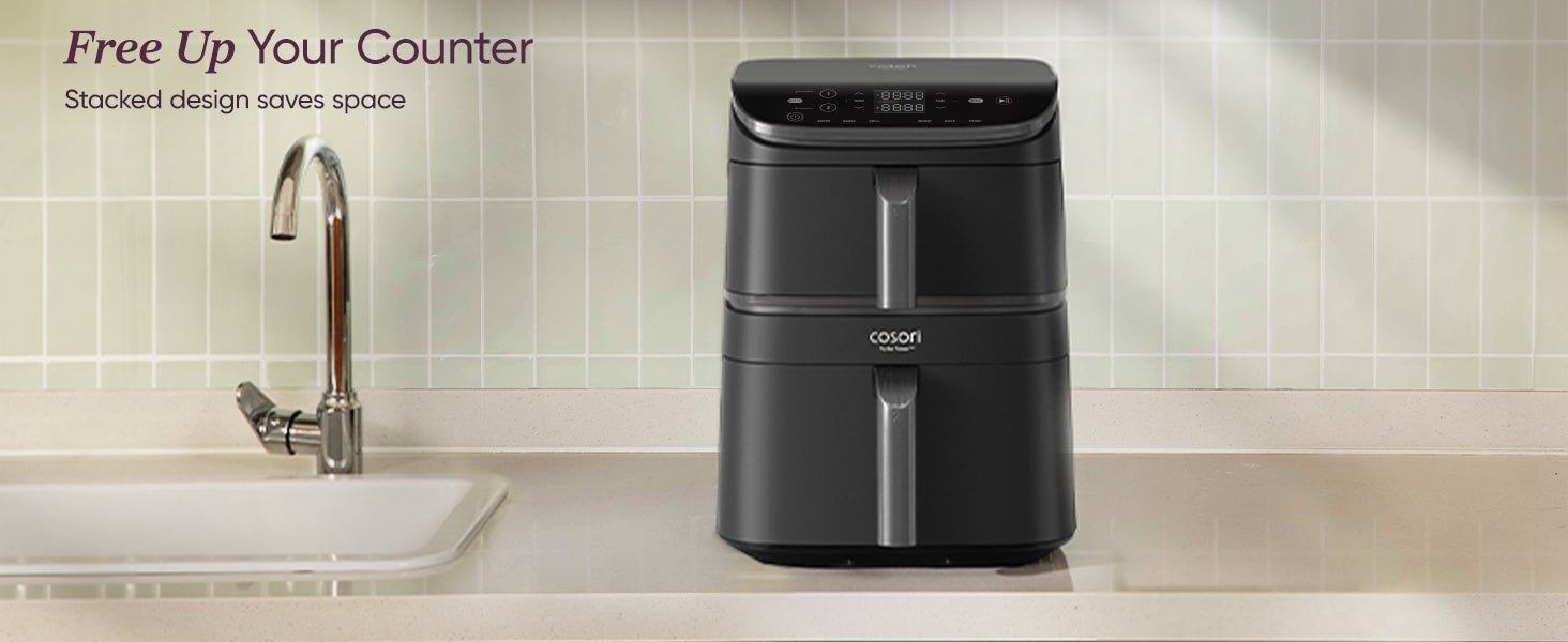 - ๐๐ข๐ ๐ ๐๐ซ ๐๐๐ฉ๐๐๐ข๐ญ๐ฒ, ๐๐ฆ๐๐ฅ๐ฅ๐๐ซ ๐ ๐จ๐จ๐ญ๐ฉ๐ซ๐ข๐ง๐ญ: Upgrade your kitchen with a 10.8L stacked designโ27% more space with 41% less footprint use (vs COSORI TF102S). No more struggling to store or fit your air fryer